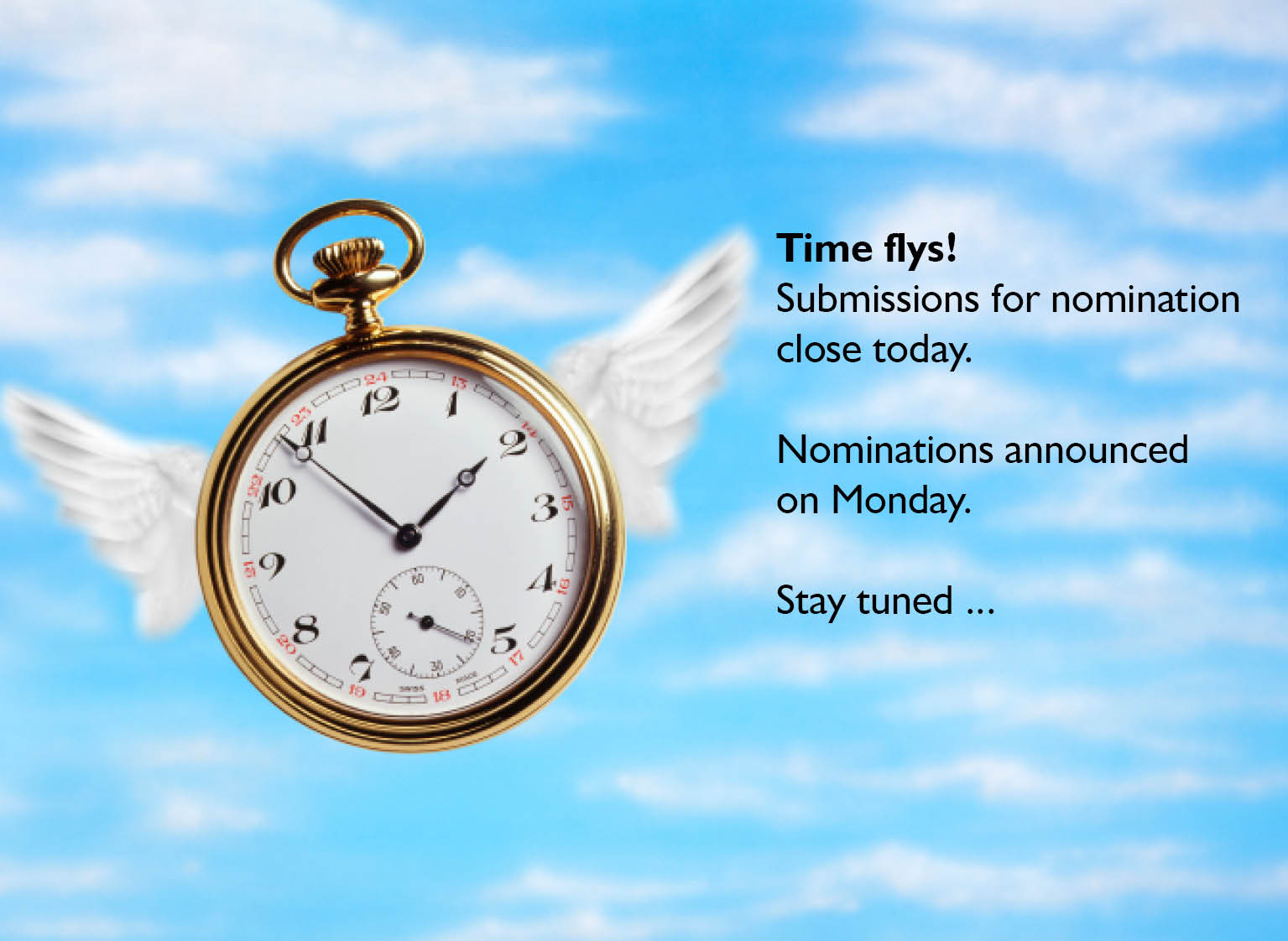 Uncategorized Time flys! Submissions close today By Amy Sweet on December 5, 2014 • ( 1 Comment ) Share this: Click to share on X (Opens in new window) X Click to share on Facebook (Opens in new window) Facebook Like Loading... Related Categories: Uncategorized
